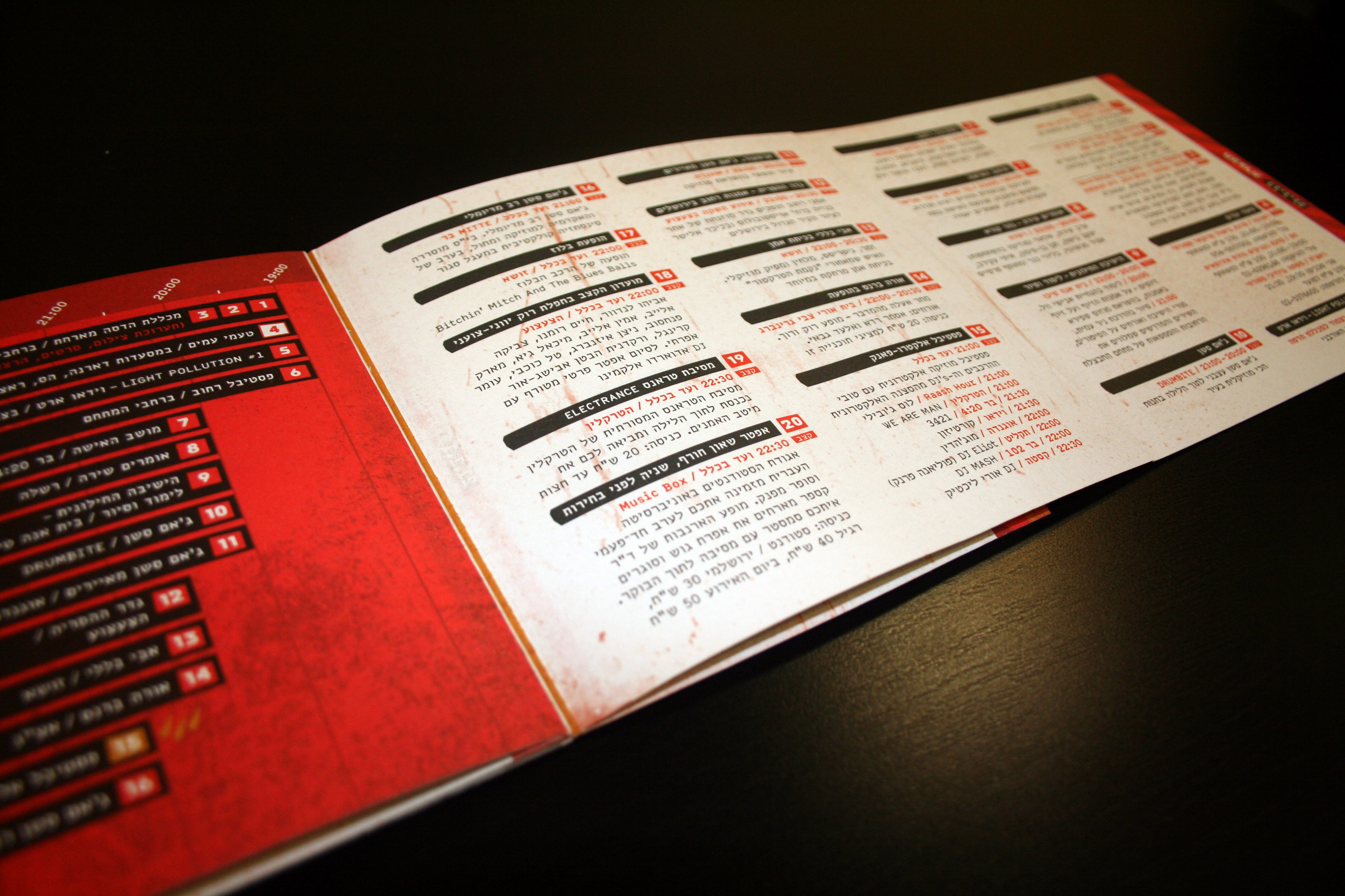 פסטיבל הבהוב של בית הספר מוסררה. התמה שנבחרה לפסטיבל היא טבע ועיר, ומצידנו מקבלת ביטוי בדימוי האינטנסיבי שיצרנו לשם כך. עץ, מפה, דם, קורי עכביש, עלה, ורידים ומה לא השתלבו להם יחד. מוזמנים כמובן לספר על האסוציאציה שלכםן