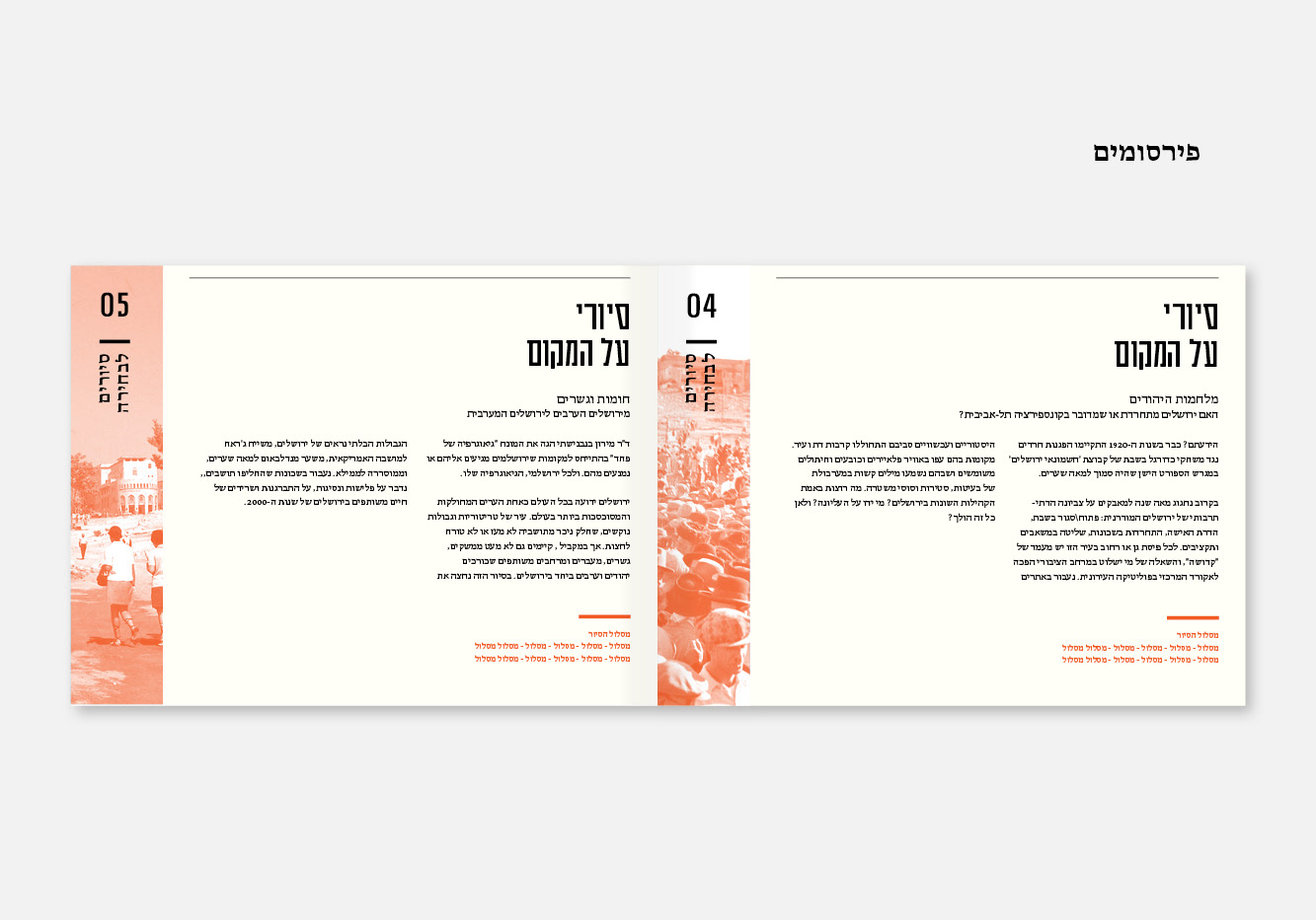 שפת מותג לגלריה העירונית בירושלים - הגלריה החדשה. הלוגו מורכב מחלק קבוע וחלק משתנה, ולכן בהכרח, "חדש". בנוסף, הצבעוניות האדומה משדרת דחיפות וכוח, שמשתלבים מושלם במיקום הייחודי - אצטדיון טדי