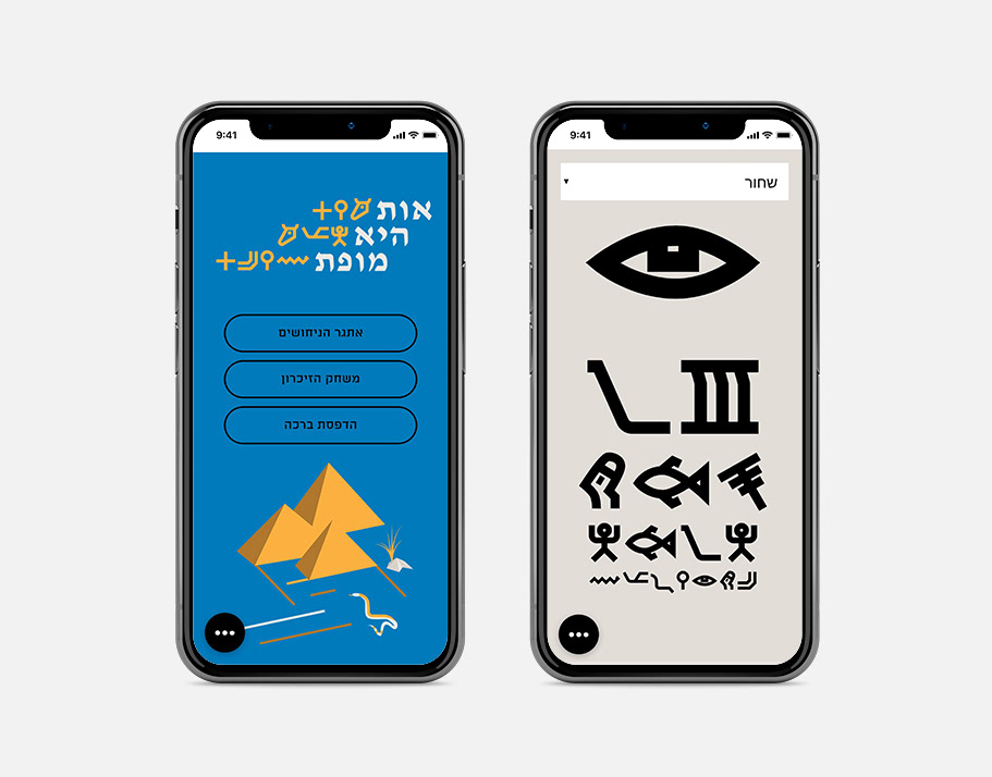 פרויקט טיפוגרפי עצמאי - 'אות היא מופת', אחד הפרויקטים השאפתנים שיזמנו. יצאנו לחקור את תולדות הכתב האלפביתי, ומה שגילינו הדהים אותנו. הסתבר לנו שהאות העברית, הלטינית, הערבית ועוד, התפתחו למעשה מכתב החרטומים המצרי! לכתב זה המומחים קוראים 'כתב פרוטו-כנעני'. במסגרת הפרויקט הקמנו לתחיה את אותו כתב פרוטו-כנעני, שהתגלה במחצבה נידחת באמצע מדבר סיני. ביצענו לו דיגיטציה ויצרנו לו שלושה משקלים - רגיל, כבד ושחור. את הפונט תוכלו להוריד באתר בחינם! חשבנו שכדאי להנגיש את הסיפור גם לילדים, ולכן יש עמוד נפרד, חגיגי וצבעוני, עם הרבה הפתעות: אתגר ניחושים דיגיטלי, משחק זיכרון להדפסה ואפילו אפשרות הדפסת ברכה עתיקה למשפחה ולחברים בכתב "חרטומים". מקווים שפרויקט זה יעזור להצית את אש הטיפוגרף הקטן שנמצא בכל אחד ואחת , גם אם היה חבוי במערה נידחת באמצע המדבר...