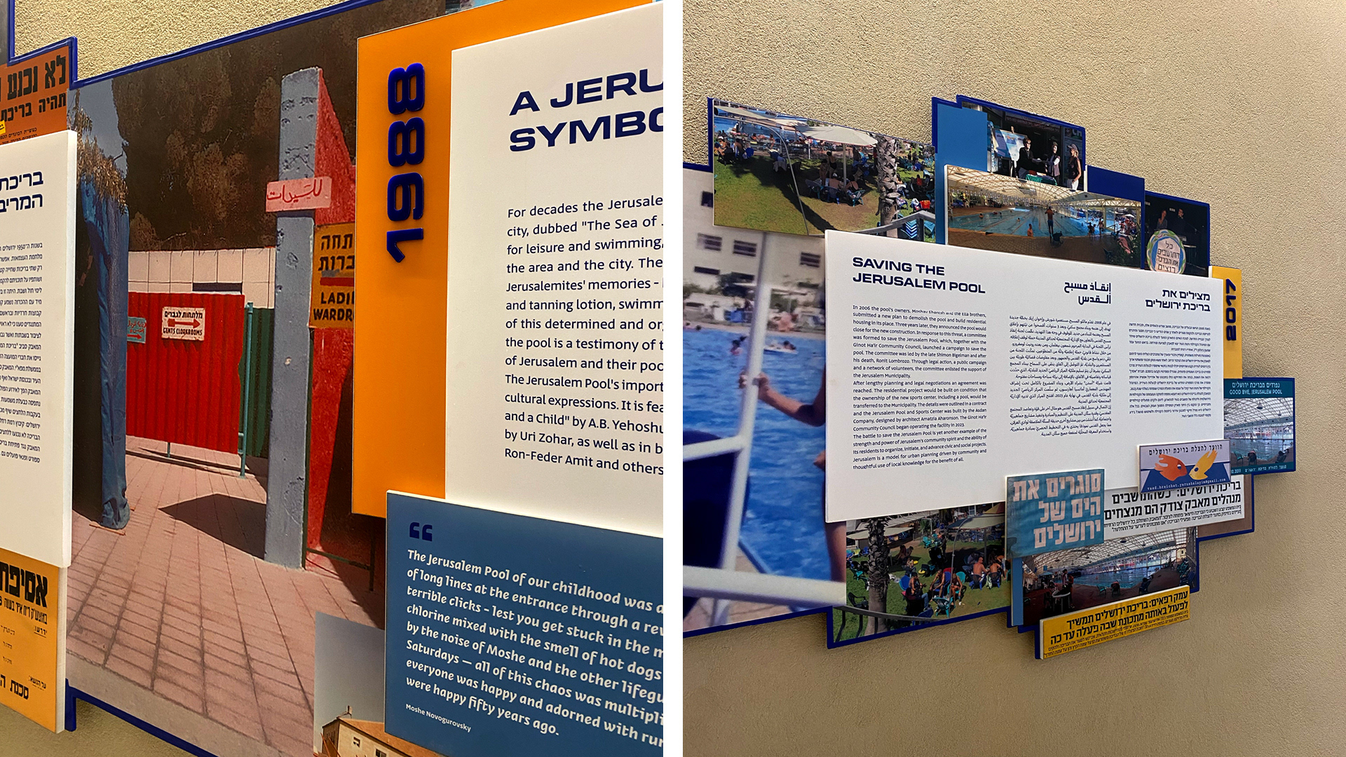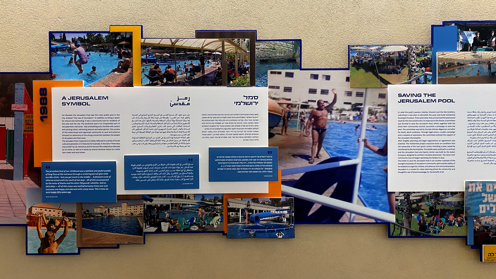 אחרי שעיצבנו את בריכת ירושלים מא' ועד ת' (מיתוג מקיף,מערכת שילוט מלאה, סט אייקונים, אלמנטים גרפיים לקירות, דימויים באותה שפה למשרדים ועוד ועוד) נתבקשנו לחזור לבריכה המקורית (וזאת שאחריה) ולתת להן את הכבודבחרנו בשפה רב שכבתית, מלאת התרחשות בדומה לאווירה שהתקיימה בבריכה, תוך שמירה על קריאות ומקצב אחיד לטקסטים